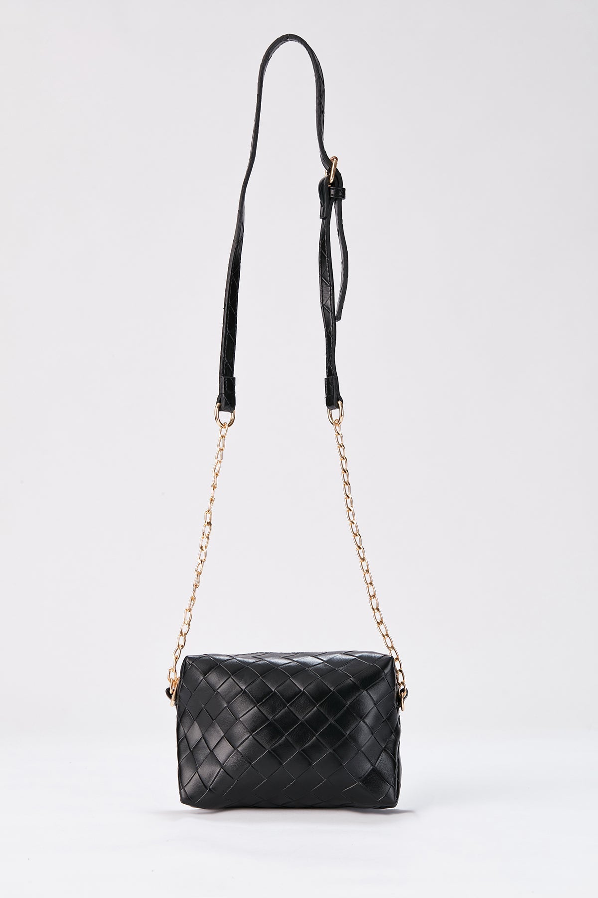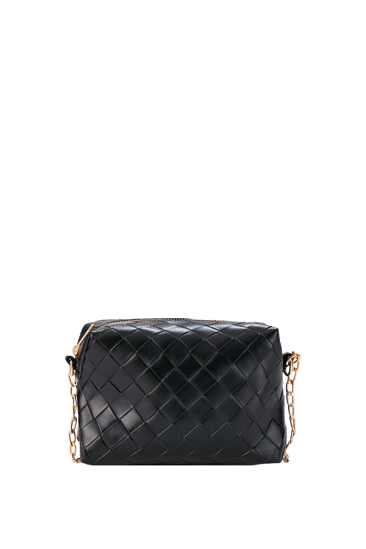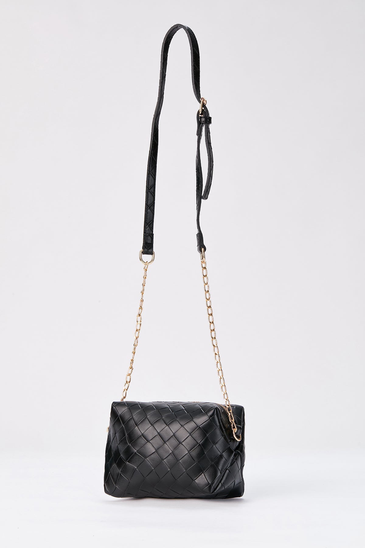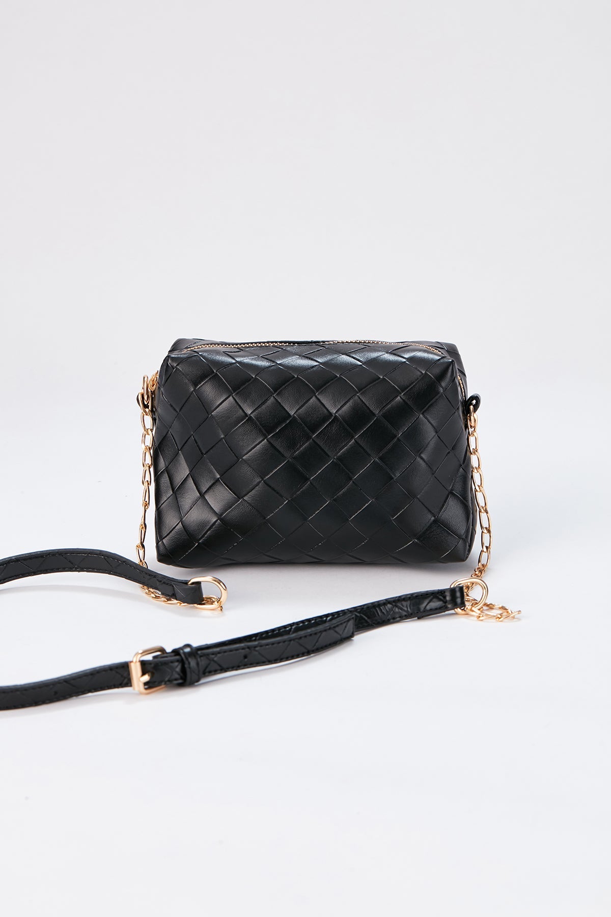 Detaylara titizlikle dikkat edilerek üretilen bu çanta, örgülü vegan derinin güzelliğini sergiliyor. Sofistike bir görünüm sunarken çevreye saygılı, modaya uygun bir seçim. Vegan deriden yapılmış ve şık bir altın zincirle süslenmiş çok yönlü ayarlanabilir kayışla istediğiniz gibi taşıyın. 56 cm'lik cömert bir düşüşle, hem konfor hem de stil sağlayarak omuz çantası olarak veya çapraz olarak takabilirsiniz.