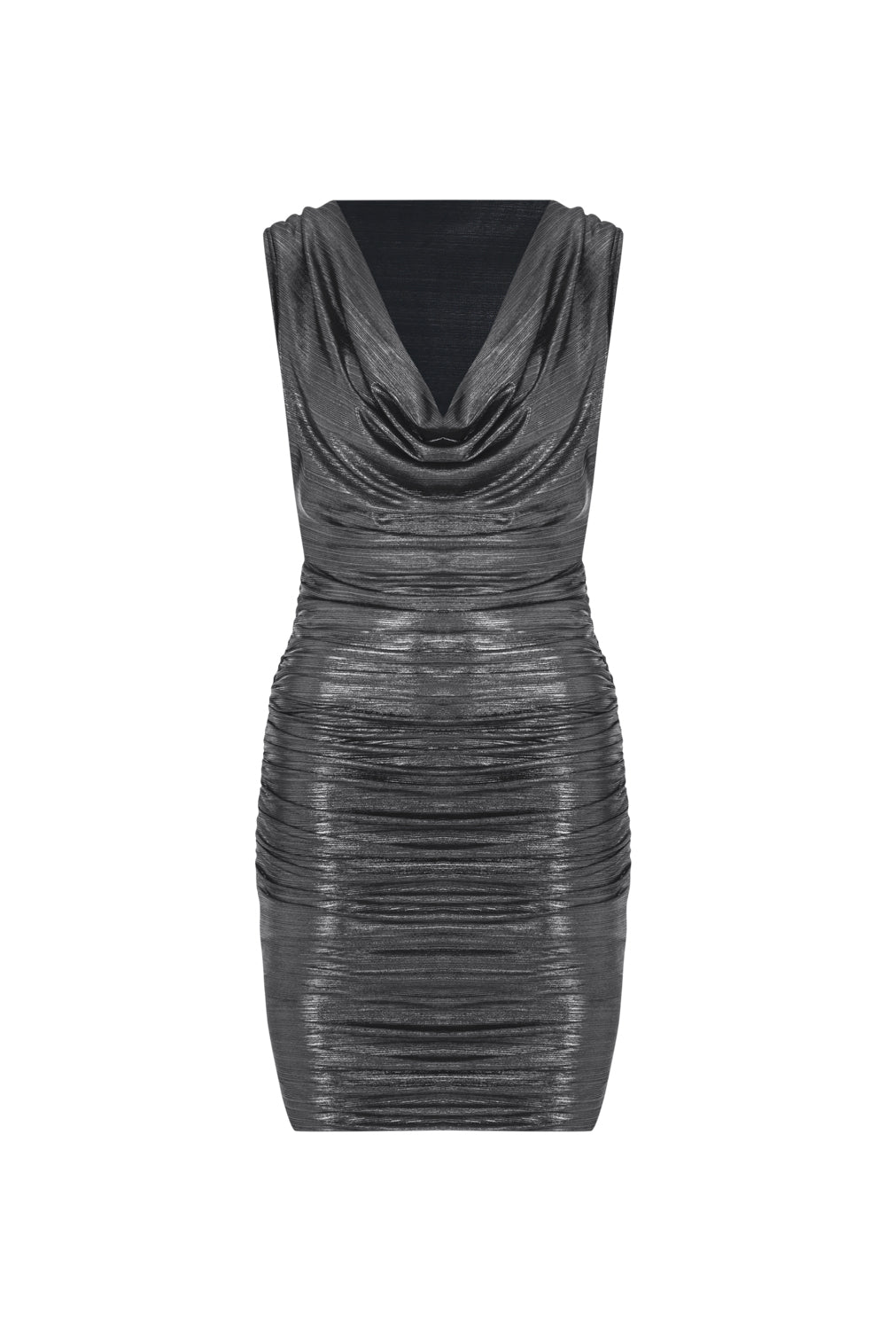 Make a statement with our radiant metallic gathered midi dress in silver. This dress is the embodiment of glamour, featuring a shimmery metallic finish and exquisite gathered details. Whether it's a special event, a night out, or a formal occasion, this dress is your perfect choice for making a memorable entrance.