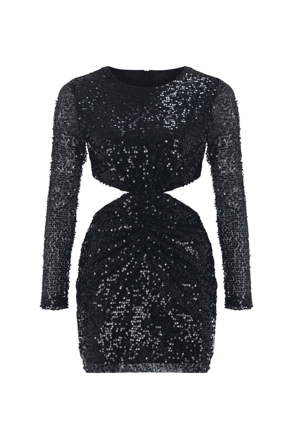 Elevate your fashion game with our stylish cut-out long-sleeve sequined mini dress in classic black. This dress is the epitome of modern sophistication, featuring trendy cut-out details and flattering long sleeves. Whether it's a special occasion, a night out, or a chic event, this dress is your perfect choice for making a dazzling fashion statement.