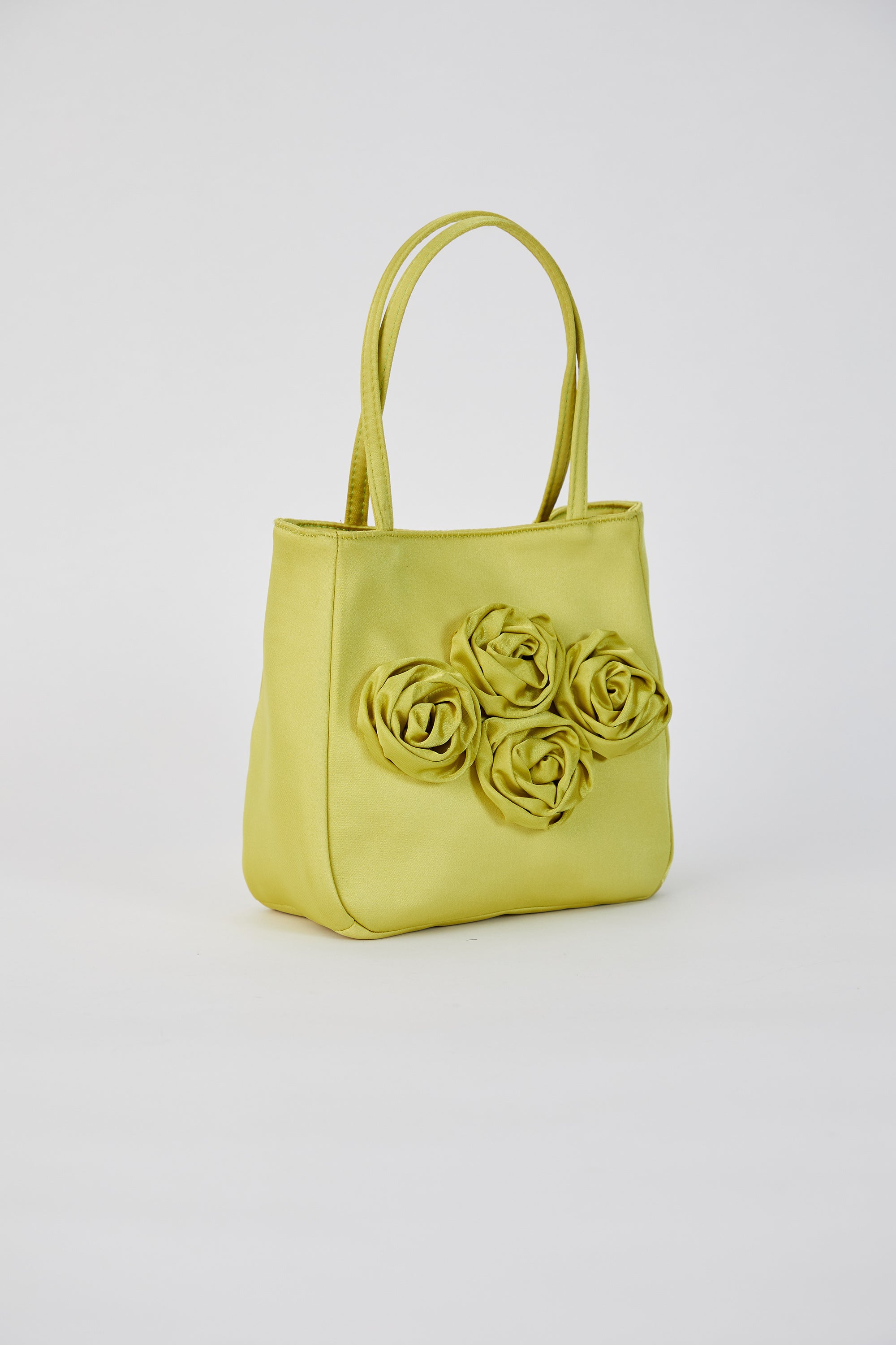 This striking handbag is perfect for any occasion day or night. Handcrafted from premium recycled satin embellished with a quartet of roses. Fully lined, with one main compartment and a magnetic closure. Carry by the satin handle or use the satin crossbody/shoulder strap.