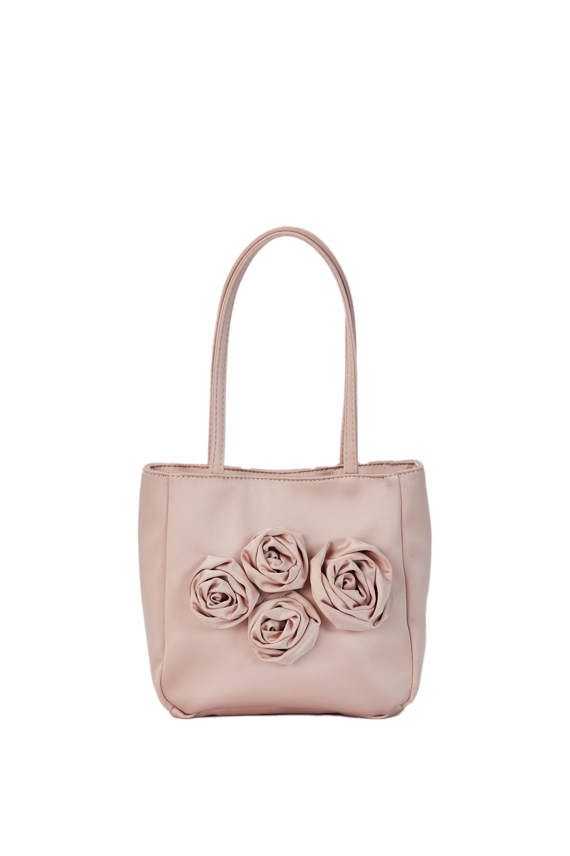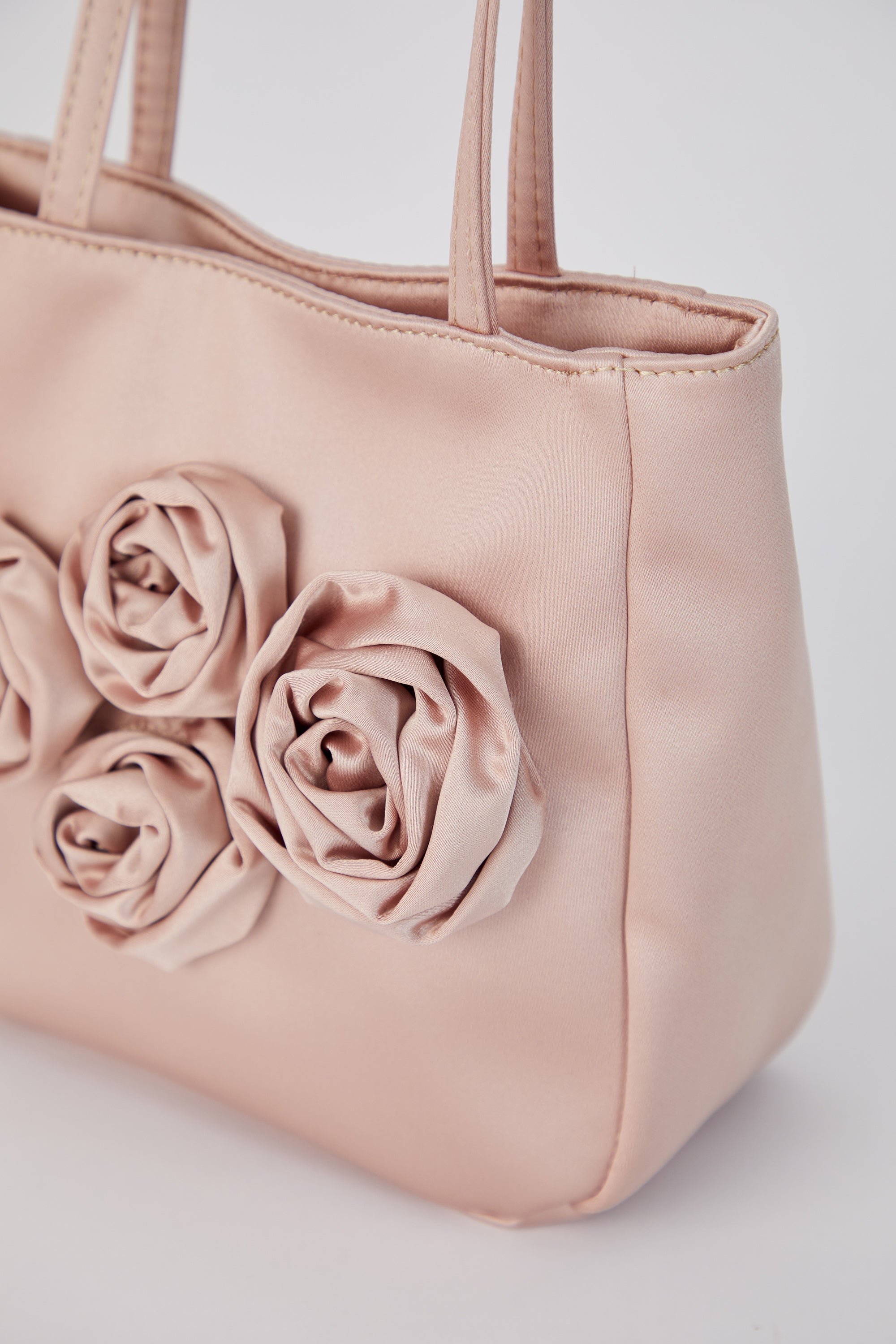 This striking handbag is perfect for any occasion day or night. Handcrafted from premium recycled satin embellished with a quartet of roses. Fully lined, with one main compartment and a magnetic closure. Carry by the satin handle or use the satin crossbody/shoulder strap.