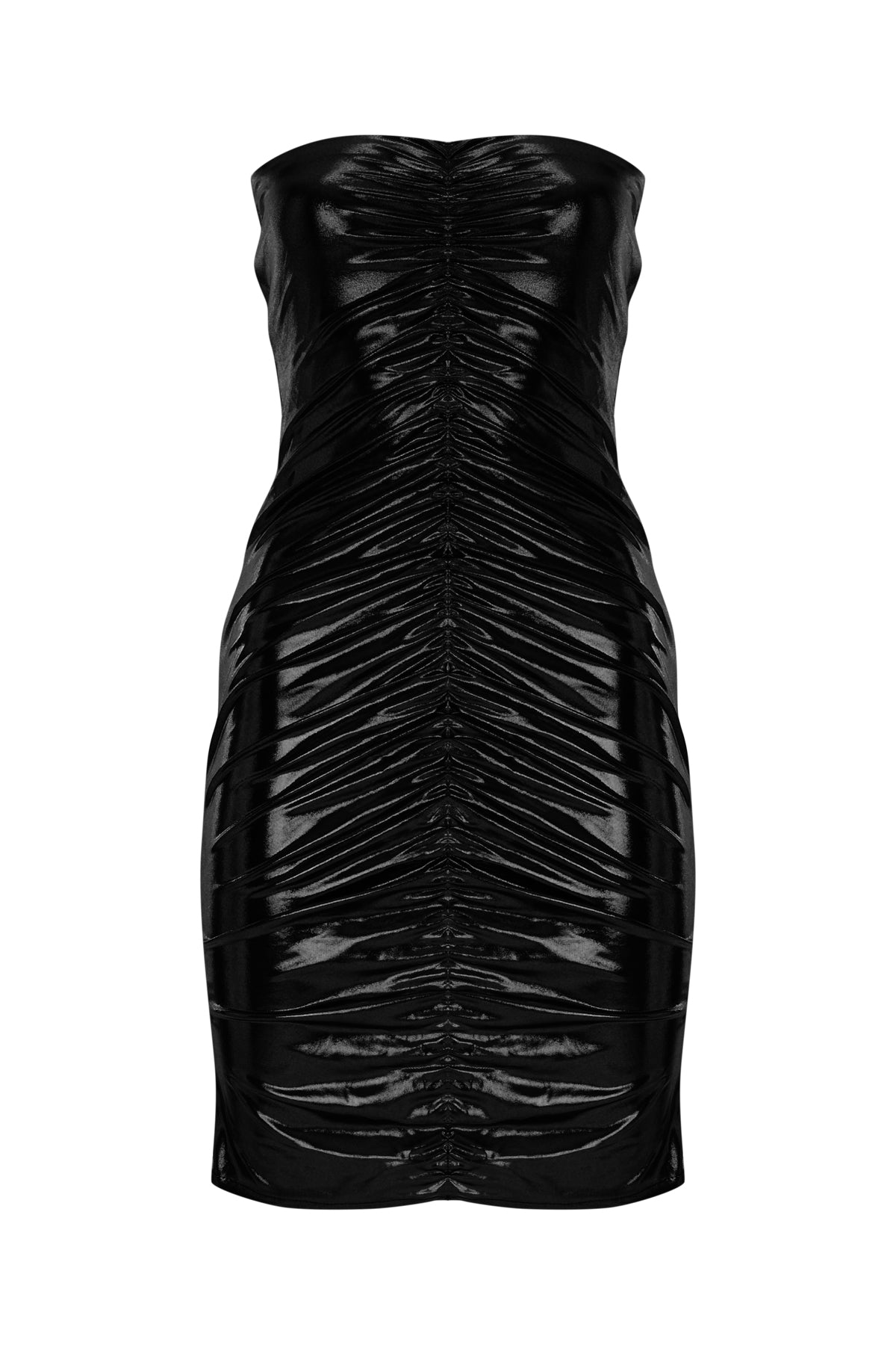 Make a statement with our radiant metallic gathered midi dress in timeless black. This dress is the embodiment of glamour, featuring a shimmery metallic finish and exquisite gathered details. Whether it's a special event, a night out, or a formal occasion, this dress is your perfect choice for making a memorable entrance.