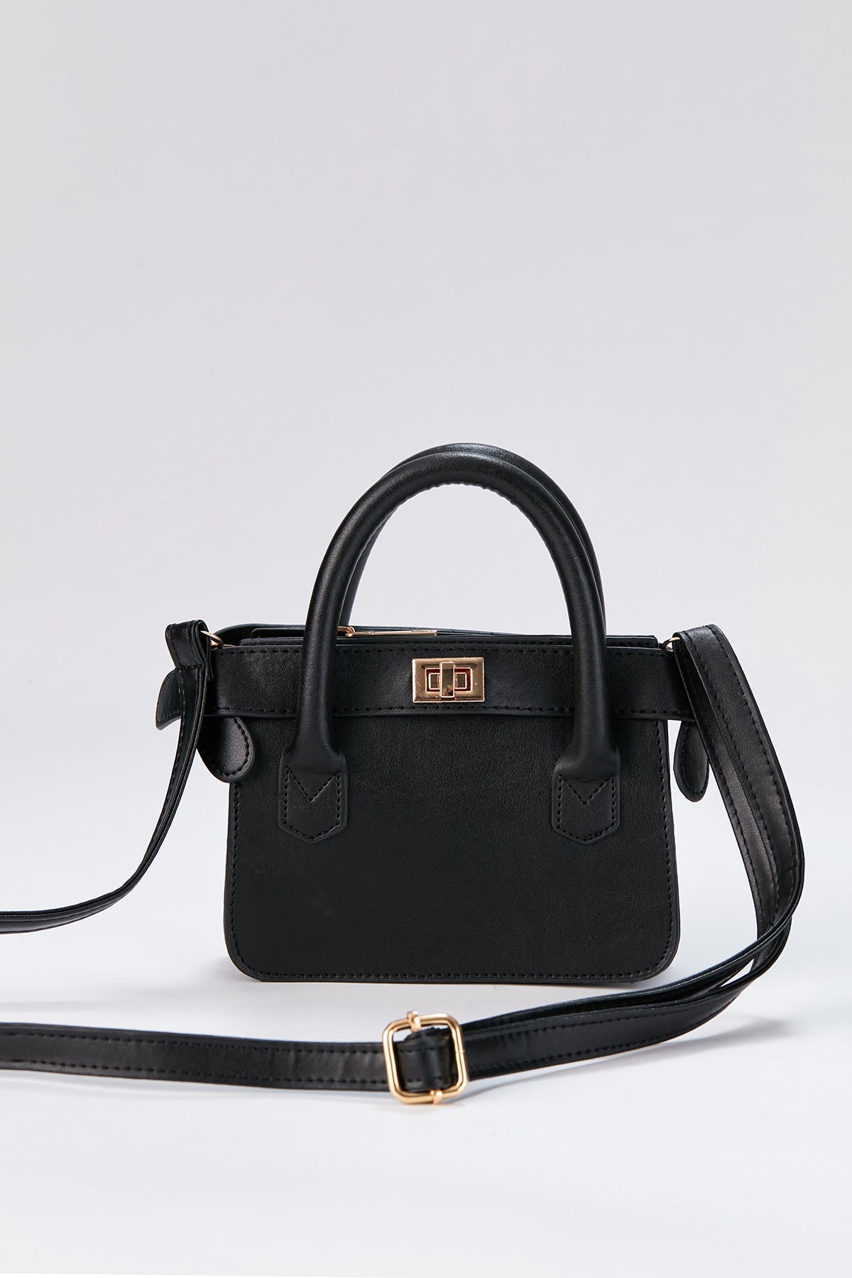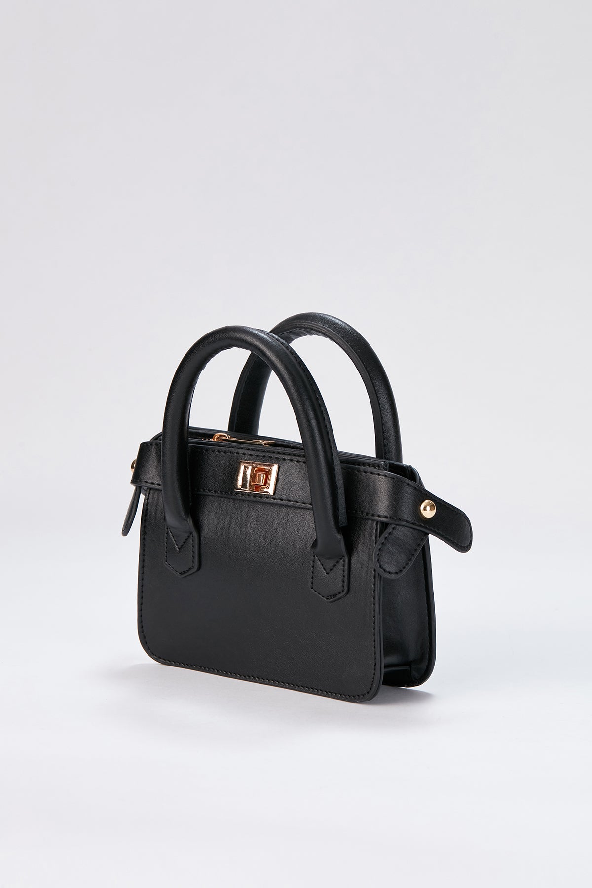 This compact top-handle bag offers refined vintage styling with a contemporary flair, perfect for transitioning from weekday meetings to evening events. Handcrafted from the finest vegan leather with a gold twist lock. Carry by the top handle, or wear across the body using the detachable vegan leather strap.