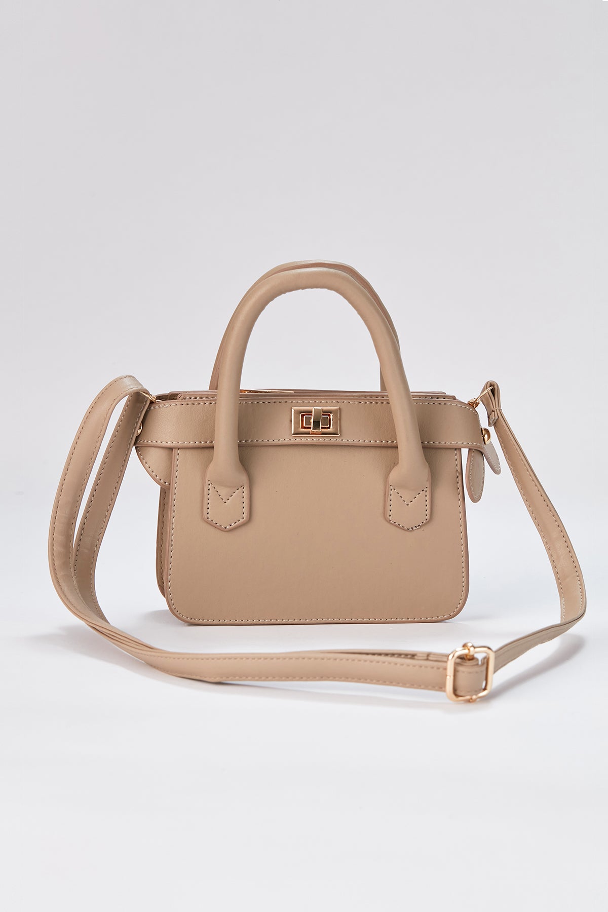 This compact top-handle bag offers refined vintage styling with a contemporary flair, perfect for transitioning from weekday meetings to evening events. Handcrafted from the finest vegan leather with a gold twist lock. Carry by the top handle, or wear across the body using the detachable vegan leather strap.
