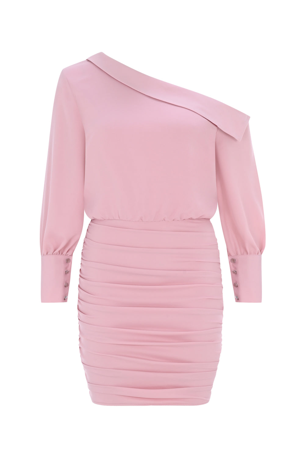 Elevate your elegance with our chic one-shoulder mini satin, mini shirt dress in pretty baby pink. This dress embodies sophistication with its unique one-shoulder design and lustrous satin fabric. Whether it's a special occasion, a night out, or a formal event, this dress is your perfect choice for making a memorable impression.