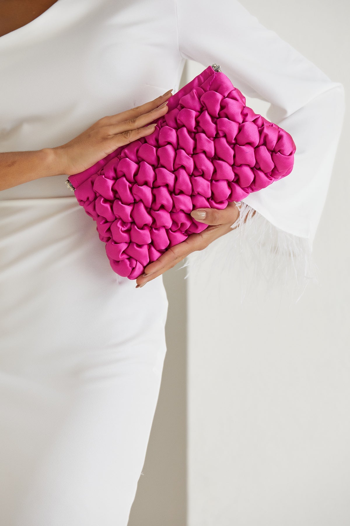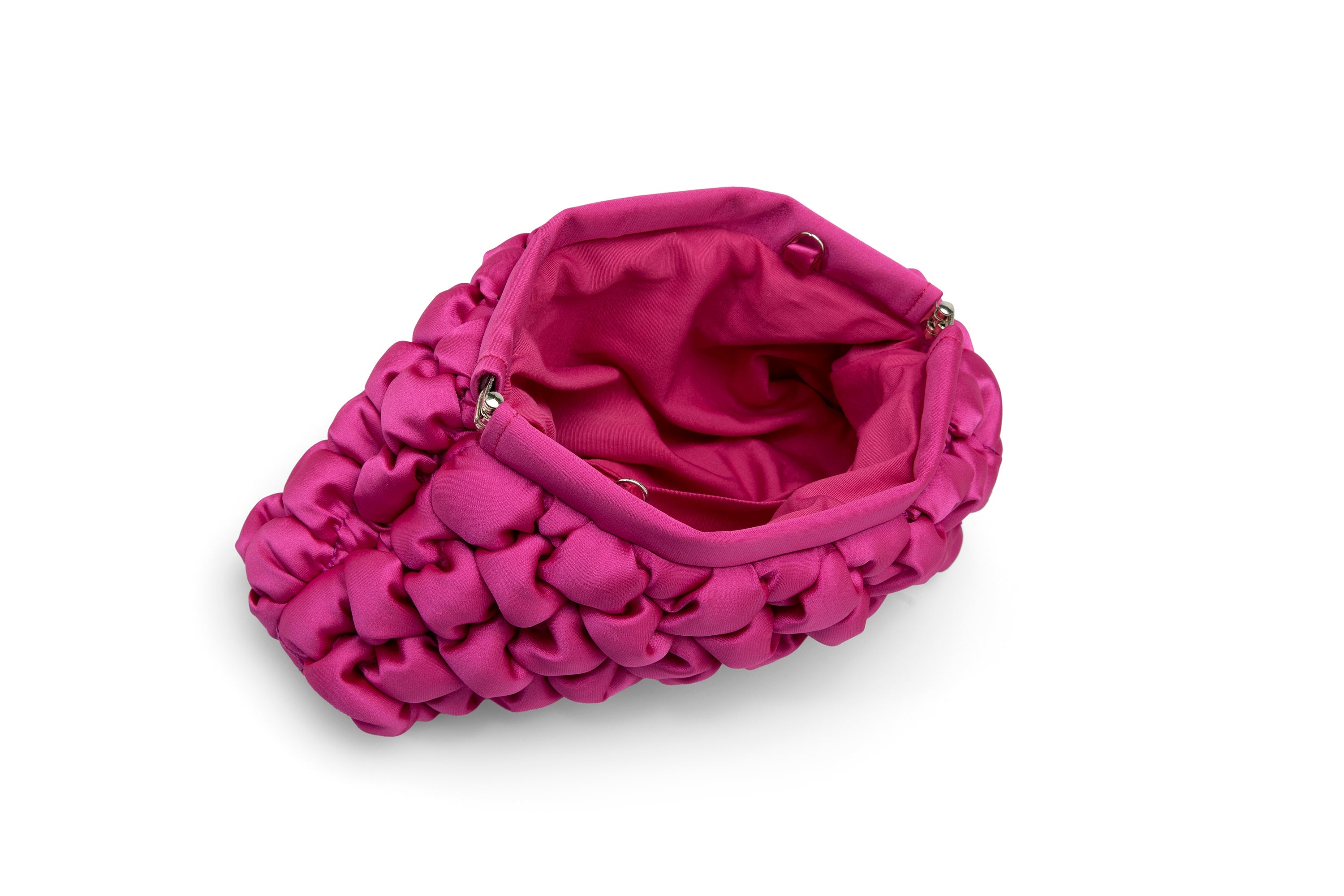 Elevate your elegance with our quilted clutch from Belissh. Embrace the allure of luxurious design and functional sophistication and make a lasting impression at any event. Crafted from premium recycled satin and featuring a cross body chain strap.