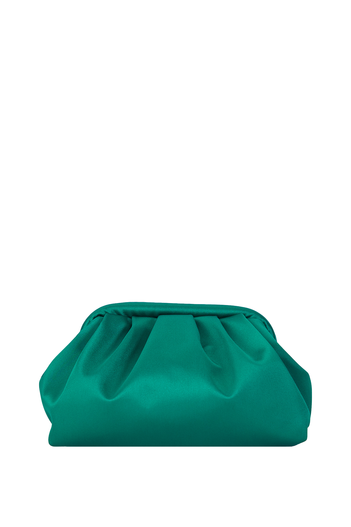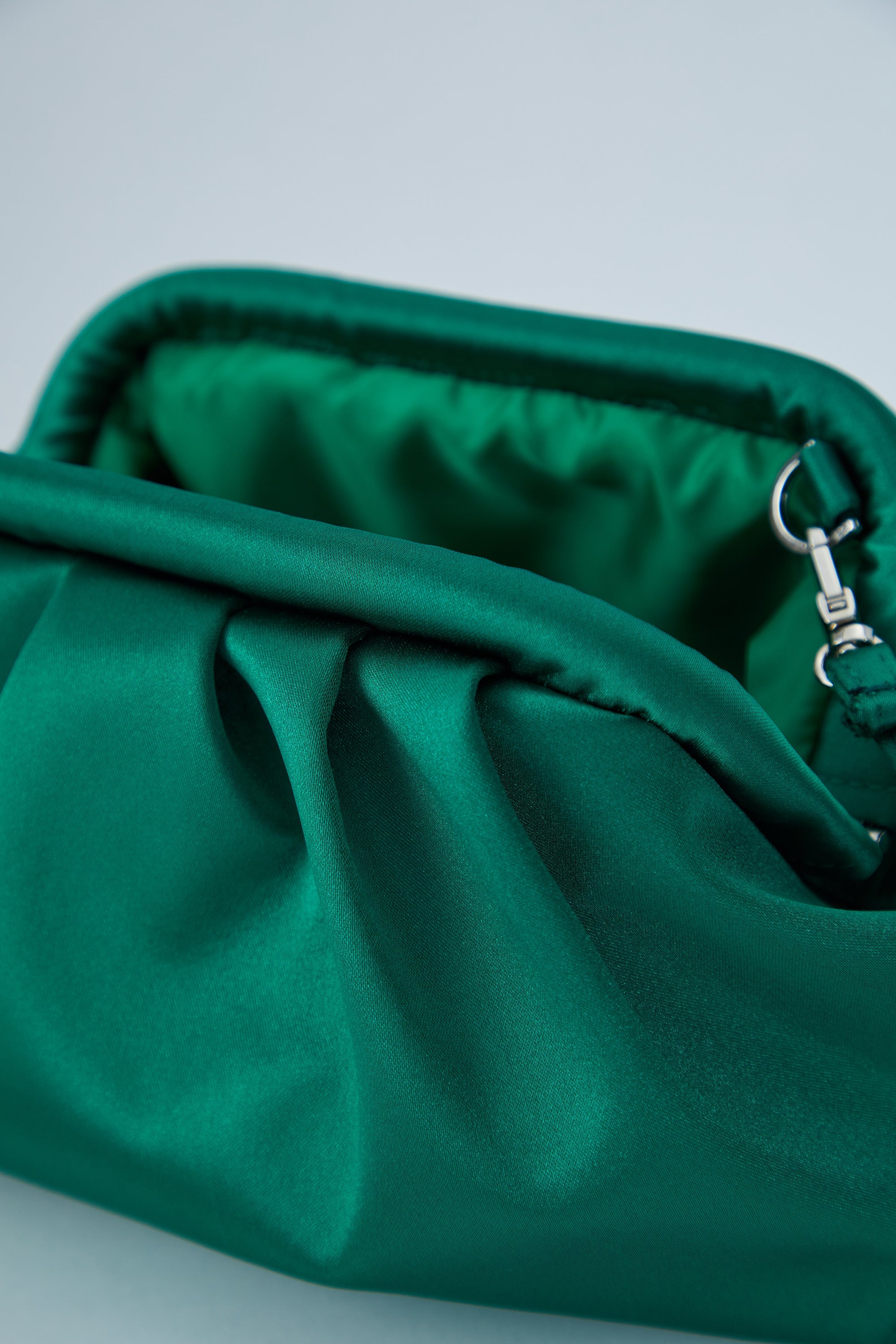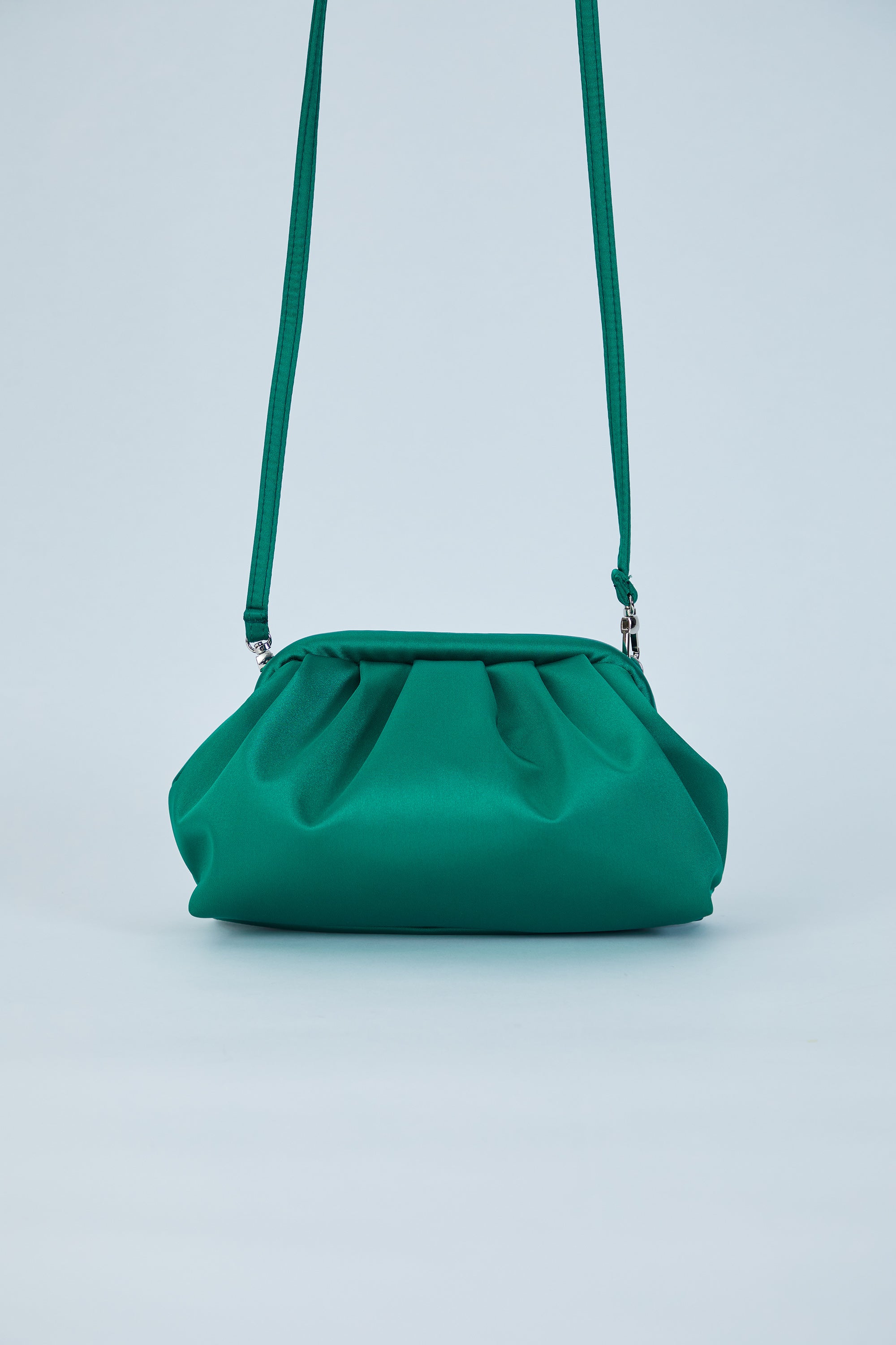 Introducing our recycled satin pouch bag in green – a sophisticated accessory that adds a touch of glamour to any ensemble. Crafted with meticulous attention to detail, this pouch bag features a silky finish that catches the light and turns heads wherever you go. Its compact size and long silver chain are perfect for carrying your essentials in style, whether it's for a night out or a special event.