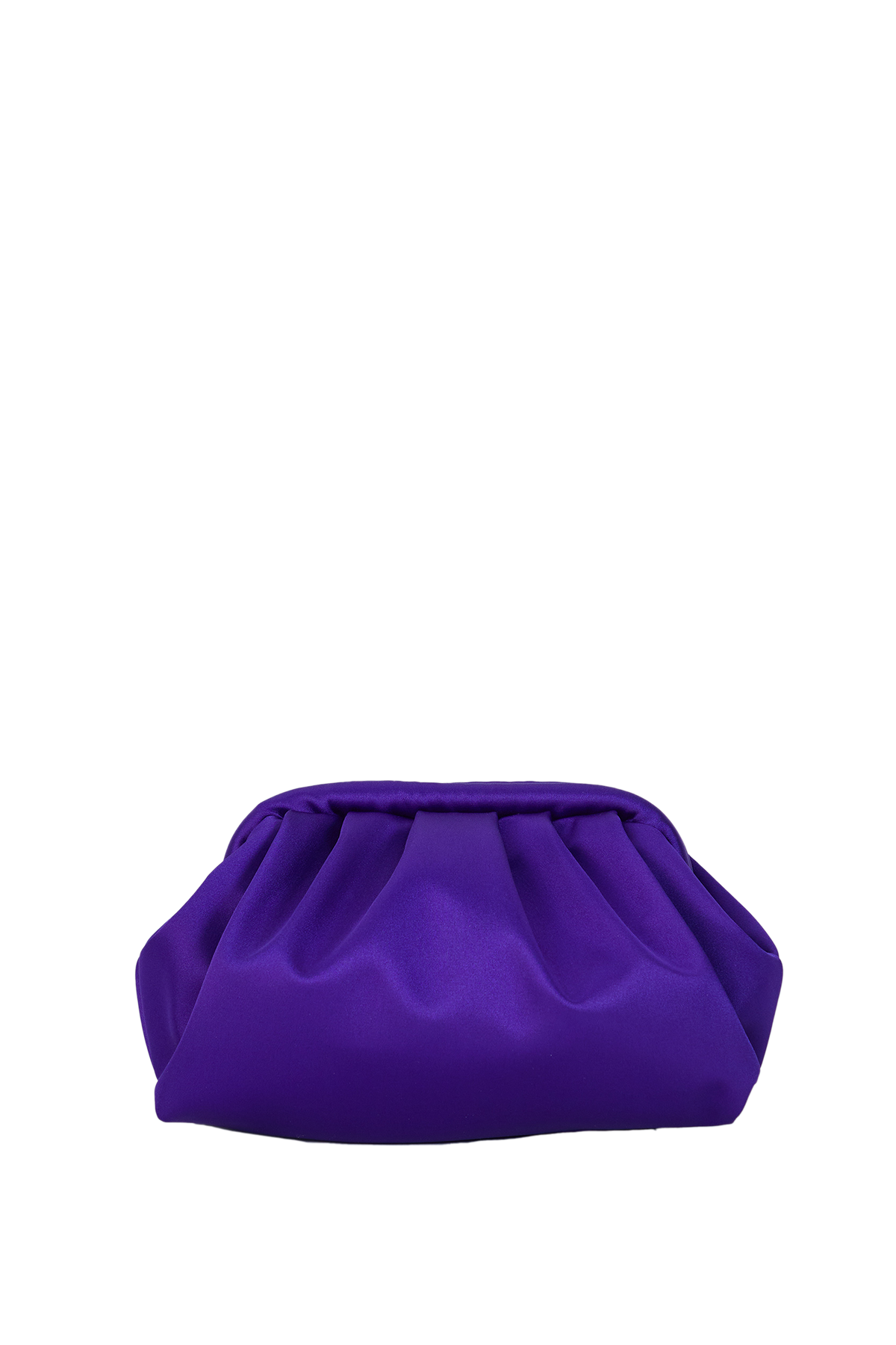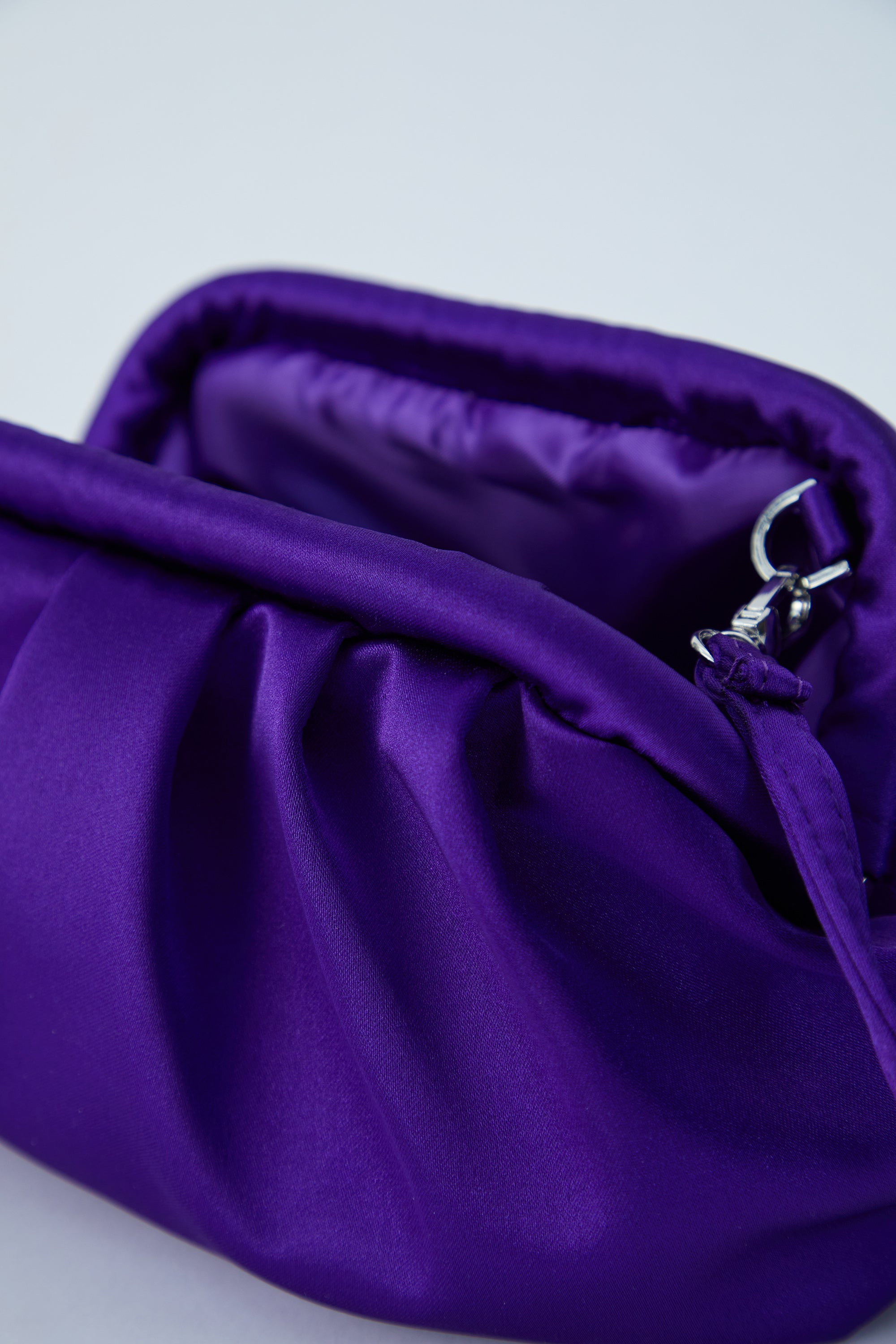 Introducing our recycled satin pouch bag in purple – a sophisticated accessory that adds a touch of glamour to any ensemble. Crafted with meticulous attention to detail, this pouch bag features a silky finish that catches the light and turns heads wherever you go. IIts compact size and long silver chain are perfect for carrying your essentials in style, whether it's for a night out or a special event.