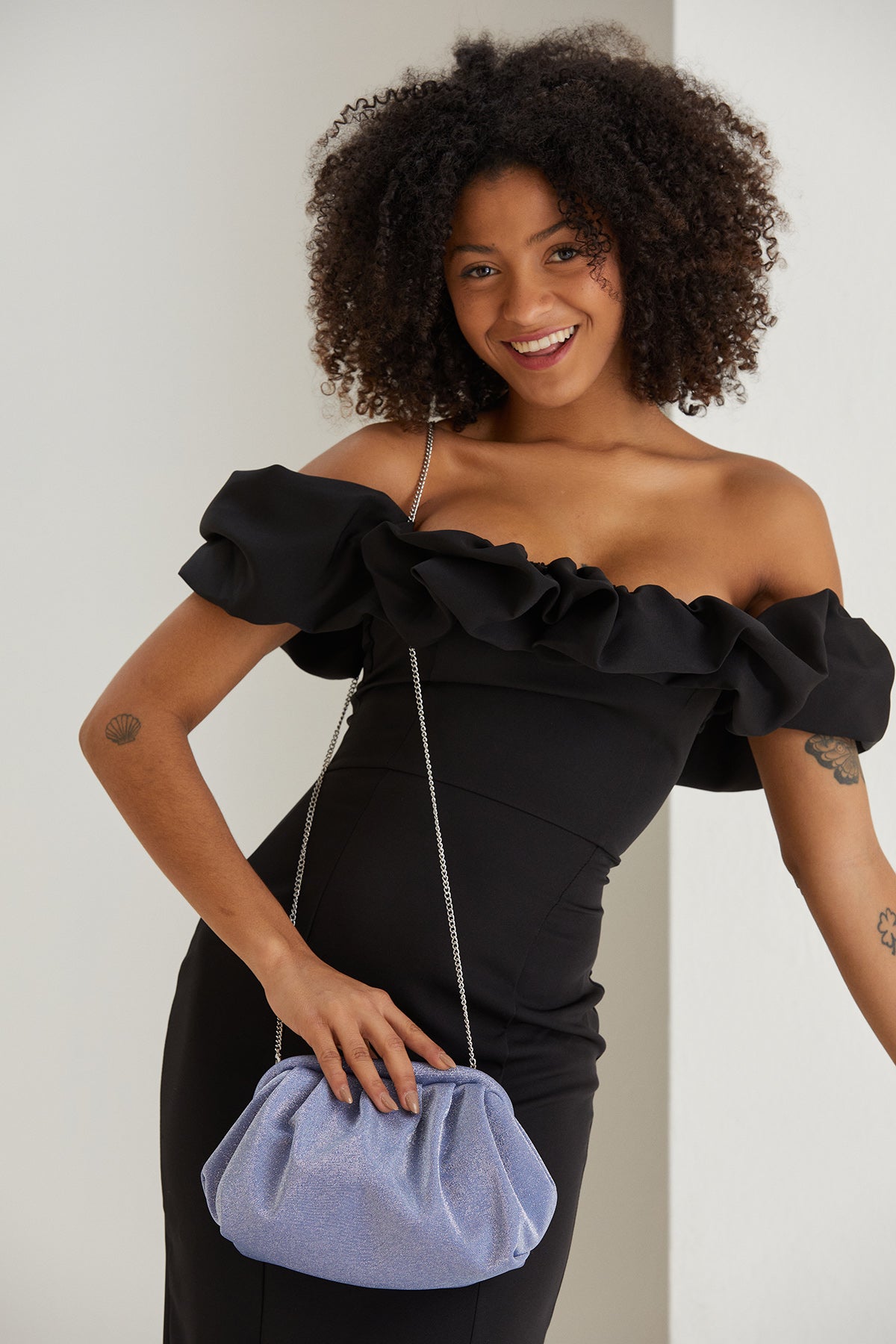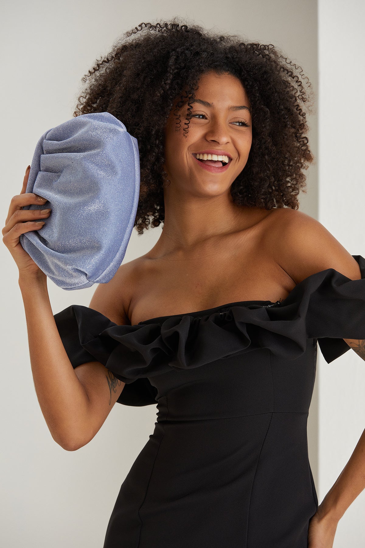 Introducing our shimmer pouch bag in silver – a dazzling accessory that adds a touch of glamour to any ensemble. Crafted with meticulous attention to detail, this pouch bag features a shimmering finish that catches the light and turns heads wherever you go. Its compact size and long silver chain are perfect for carrying your essentials in style, whether it's for a night out or a special event.