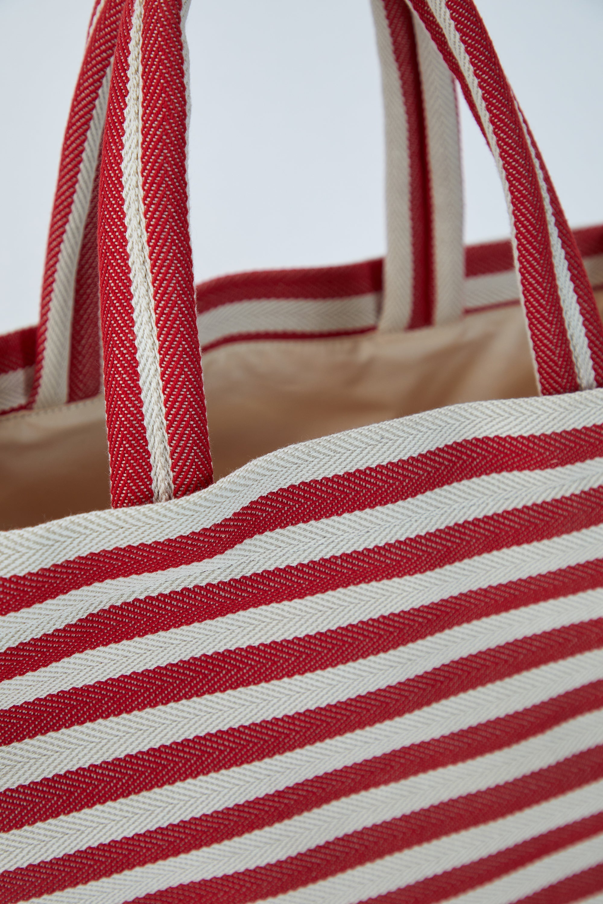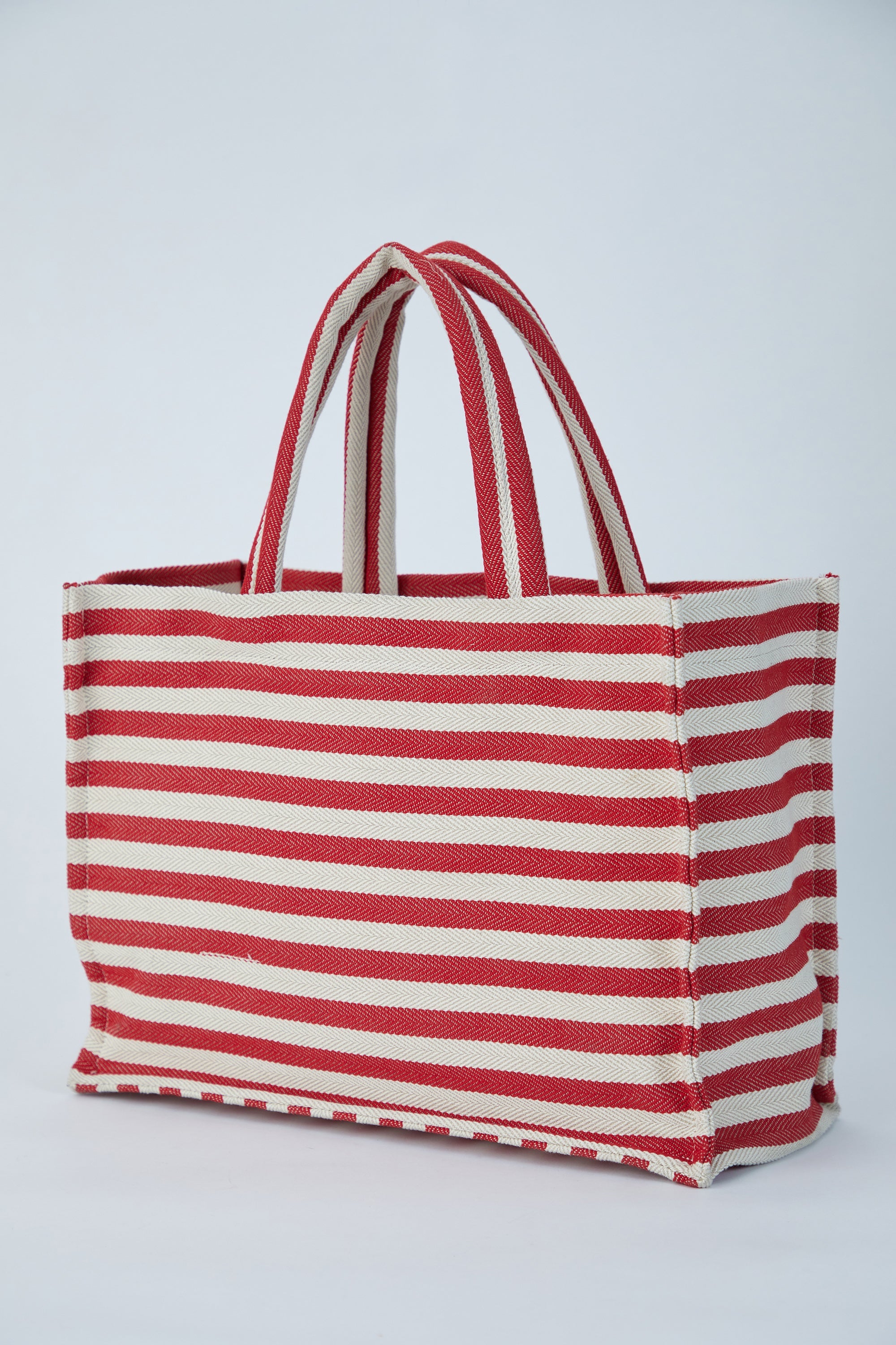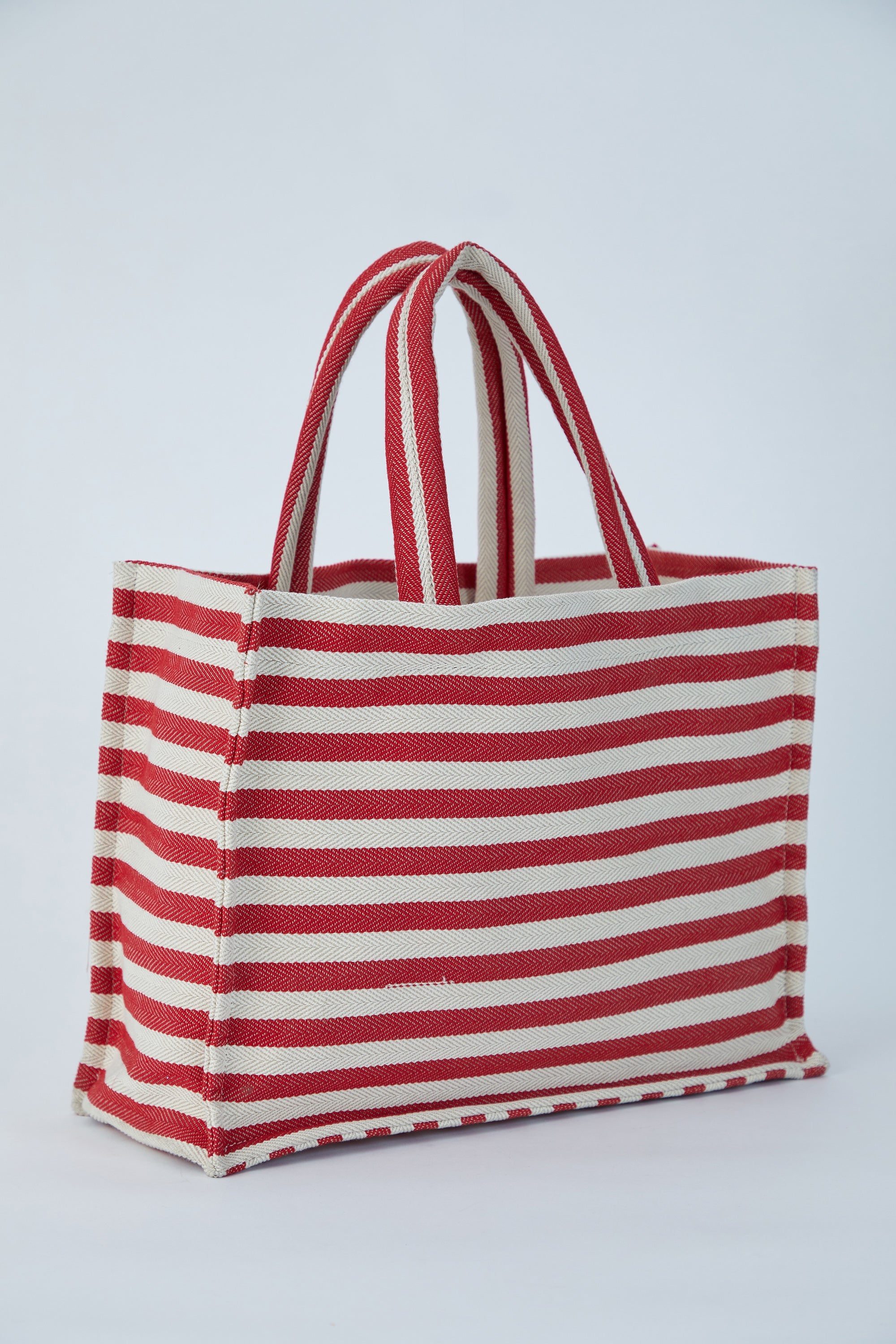 Elevate your style with our striped canvas tote bag in red and white stripes – a timeless and versatile accessory that brings a touch of nautical charm to your ensemble. Crafted from durable striped canvas, this tote bag features a comfortable shoulder strap for effortless carrying.