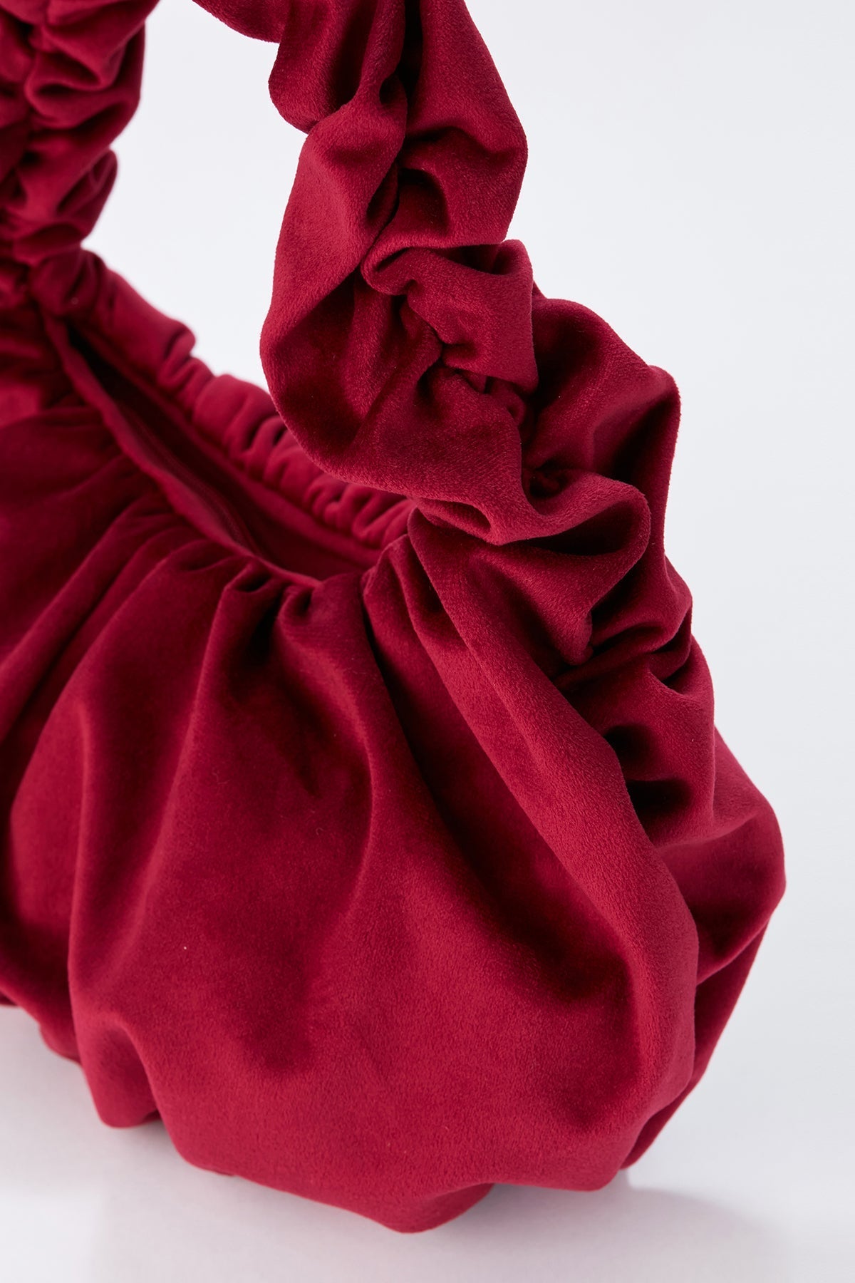 Elevate your style with the velvet croissant handbag from Belissh. This luxurious accessory combines plush velvet with a unique croissant-inspired design, making it a must-have fashion statement. Lightweight with a zip closure.